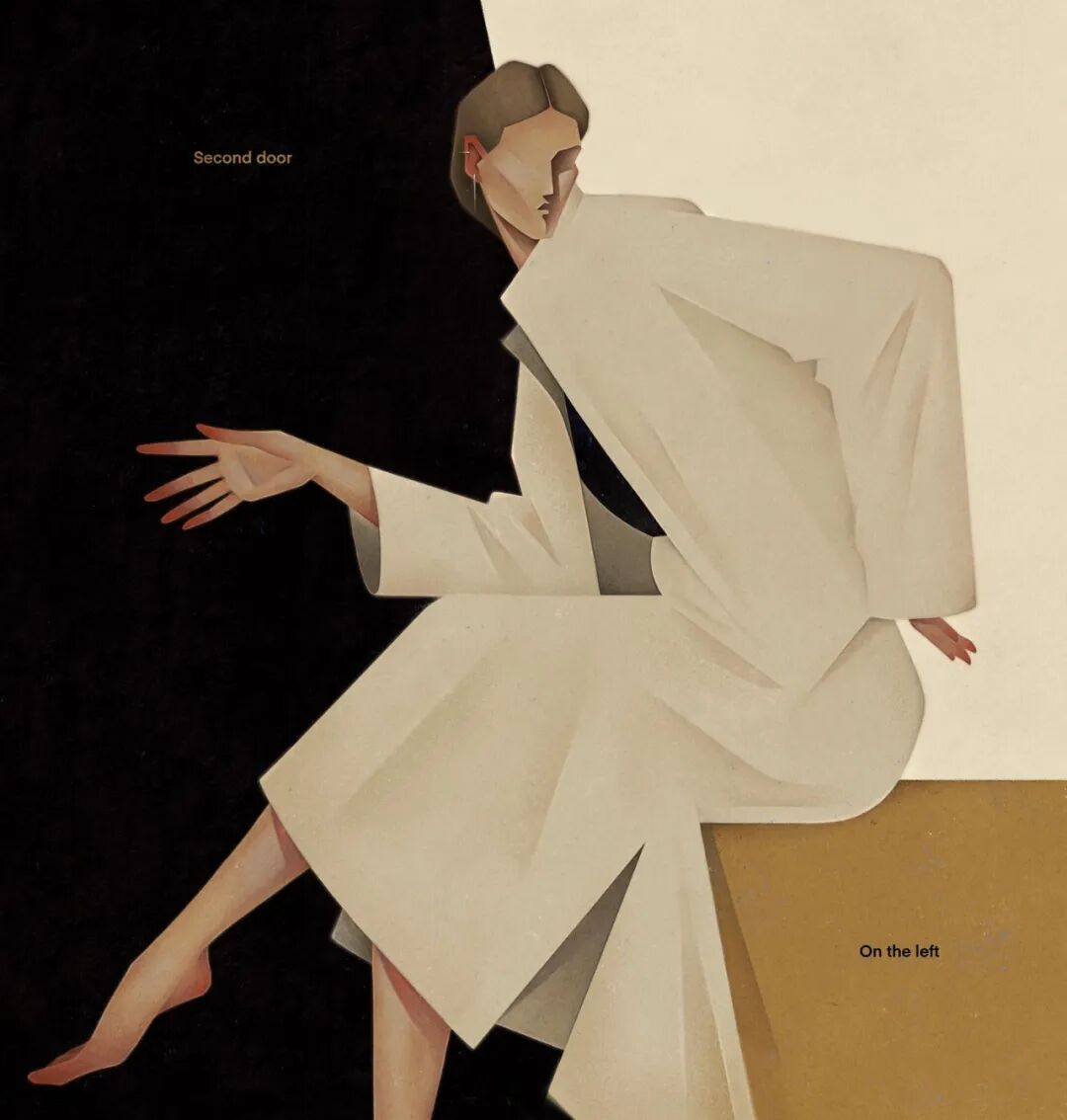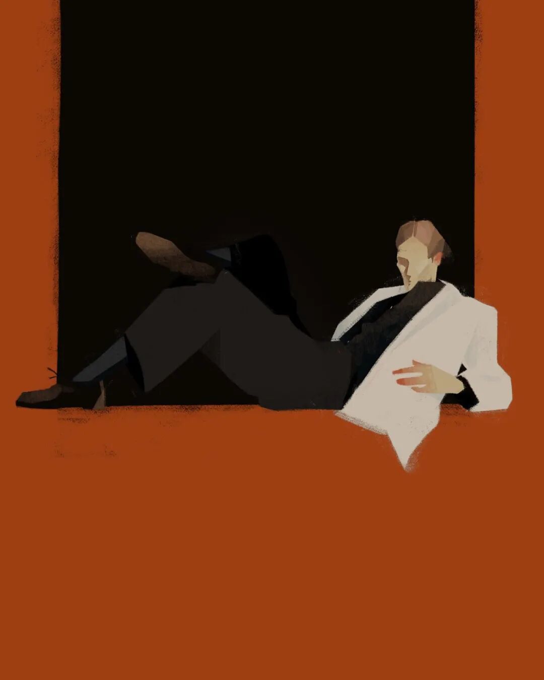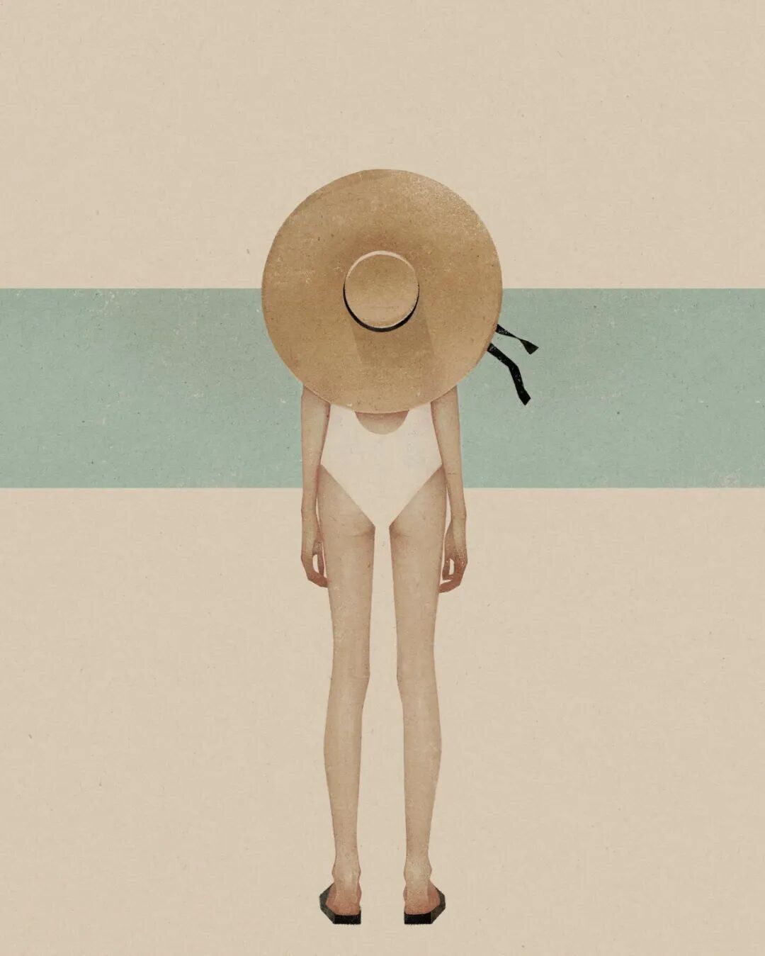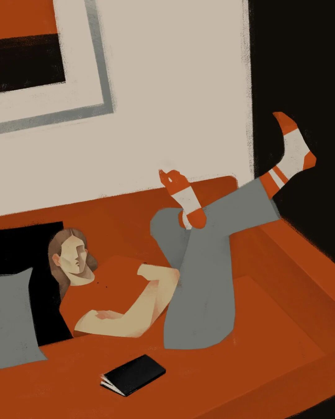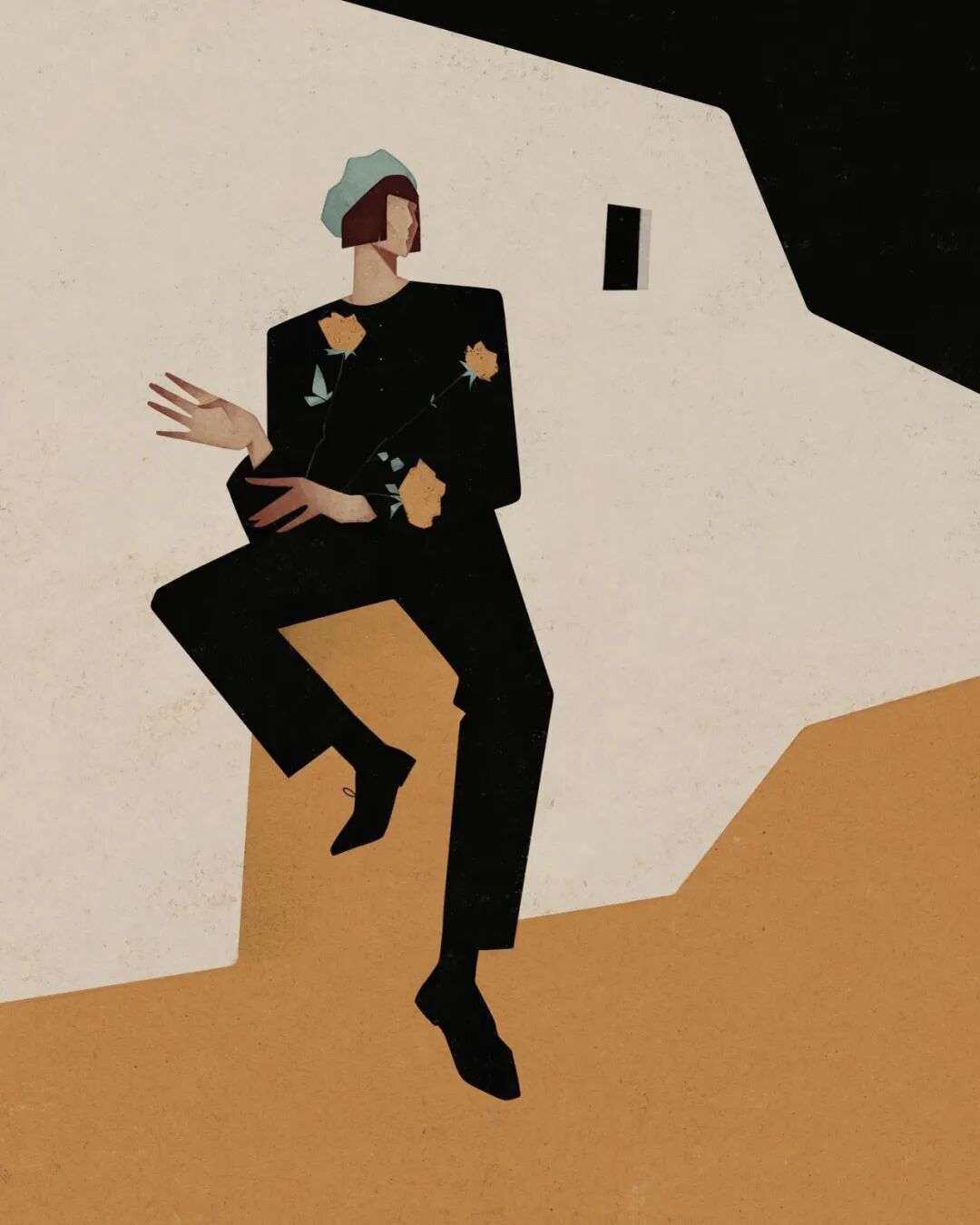 在Valeriya的插画里,过于简洁的线条往往被掩藏在色块与色块的关系里,存在感几乎降到了最低点。而她却利用最少的色彩元素,构建与表现出了完整的人物与场景。