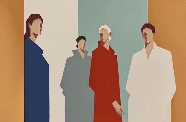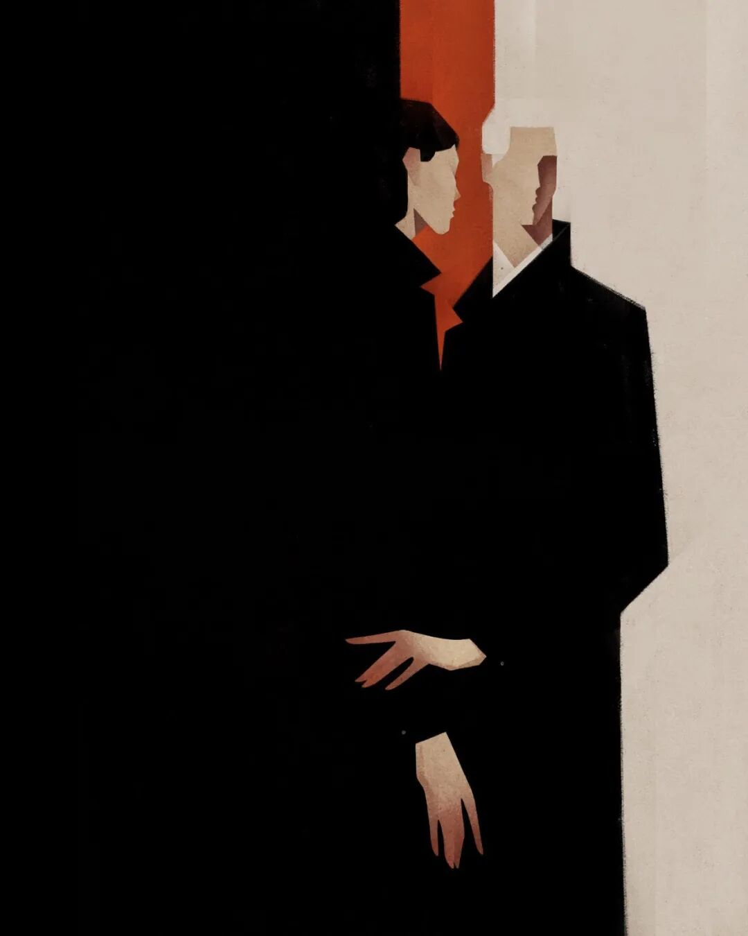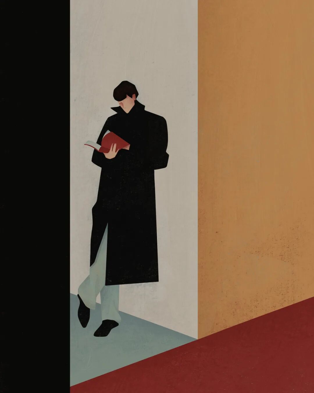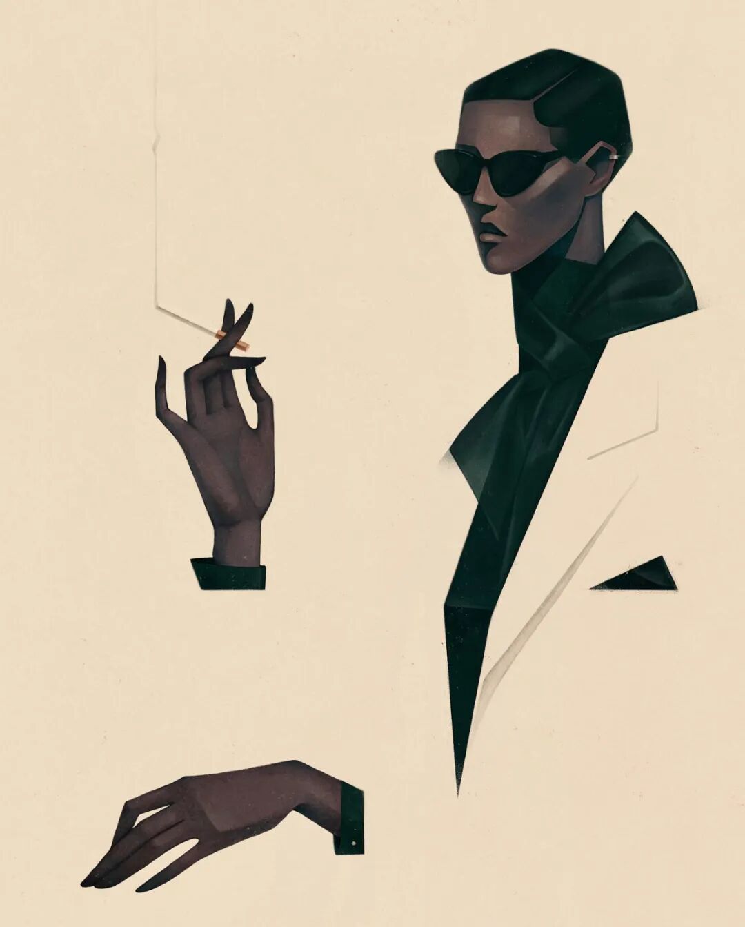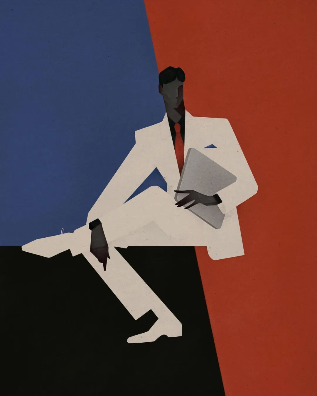 在Valeriya的插画里,过于简洁的线条往往被掩藏在色块与色块的关系里,存在感几乎降到了最低点。而她却利用最少的色彩元素,构建与表现出了完整的人物与场景。