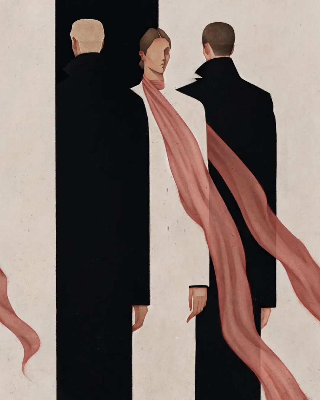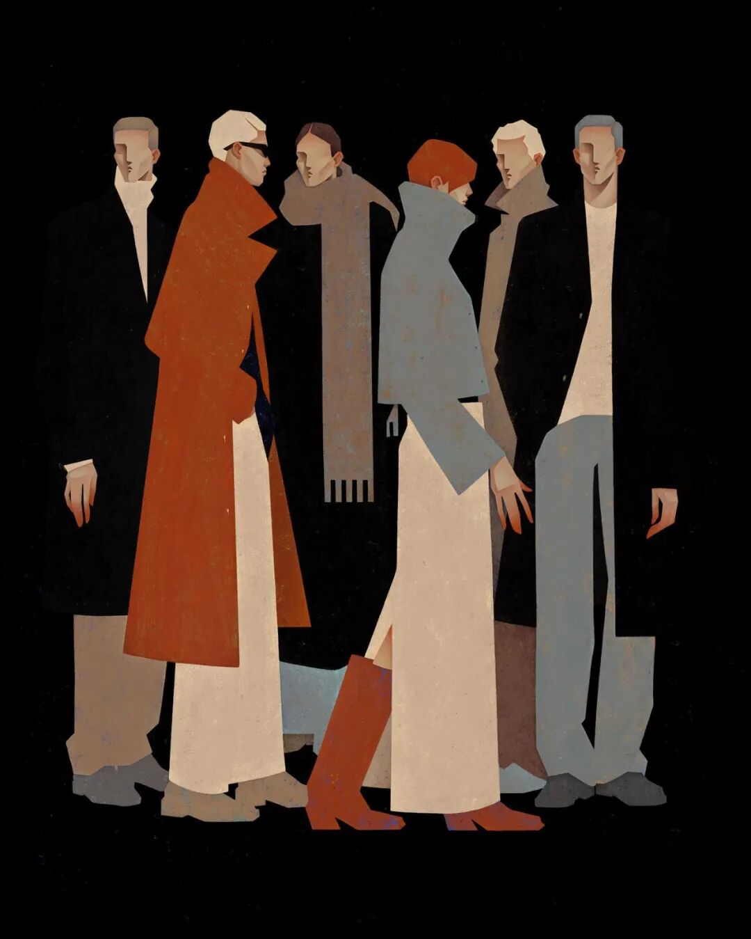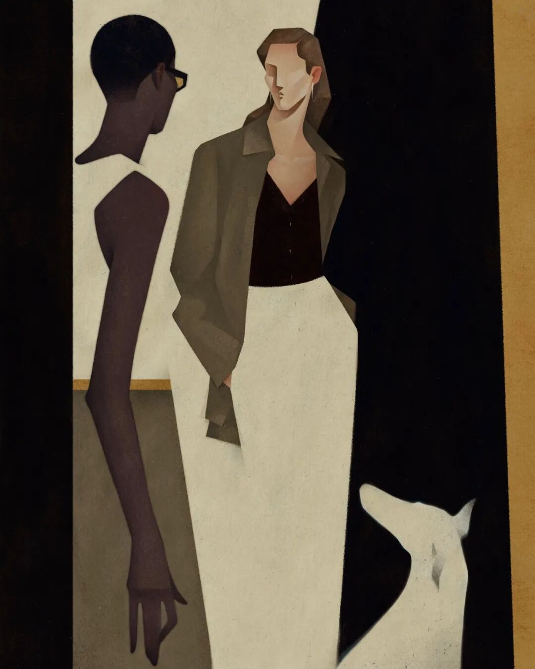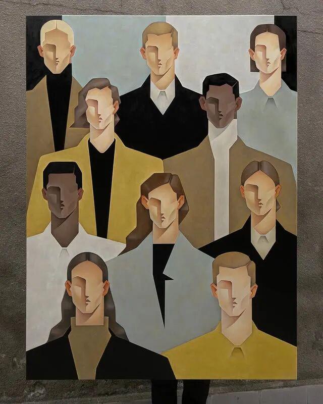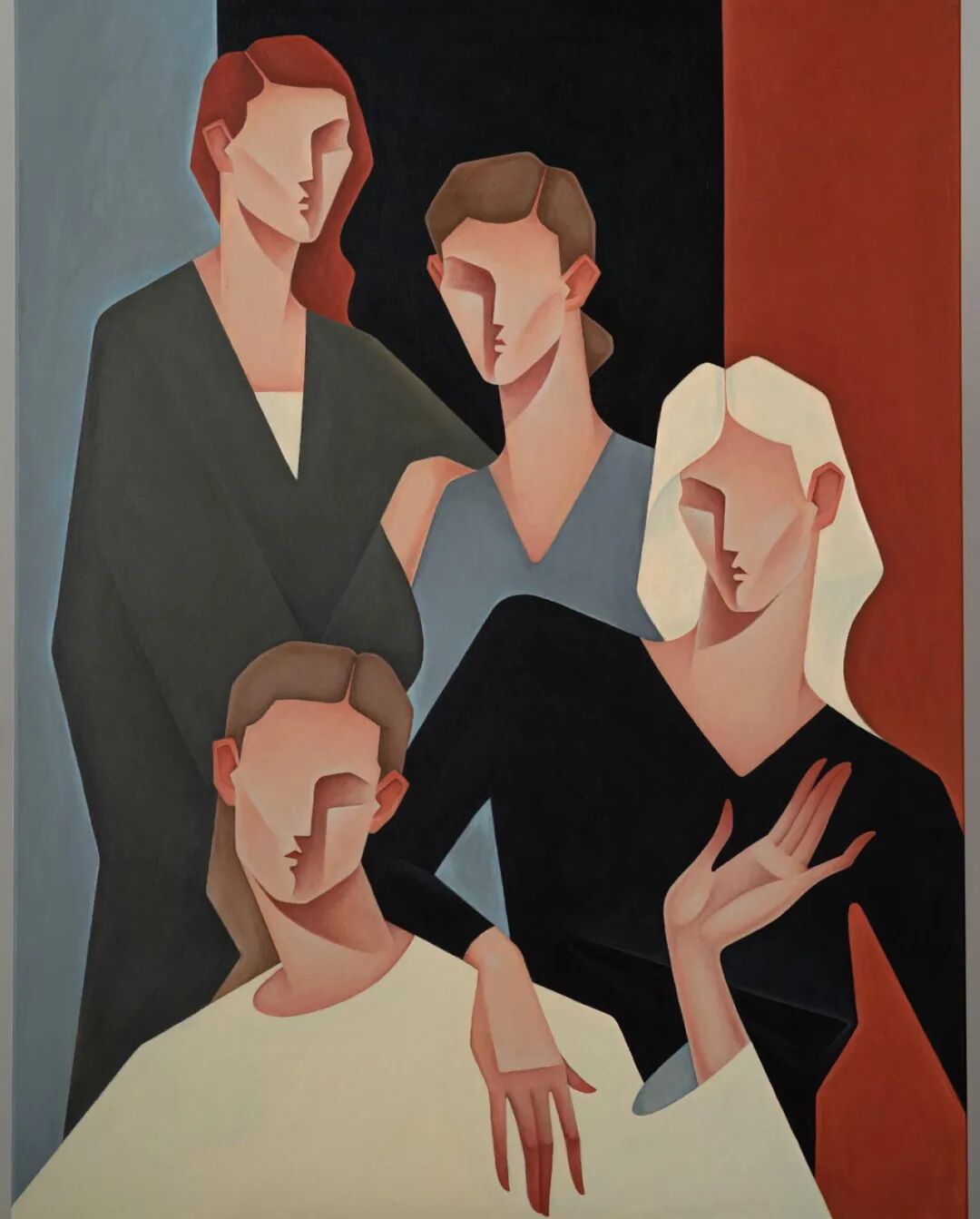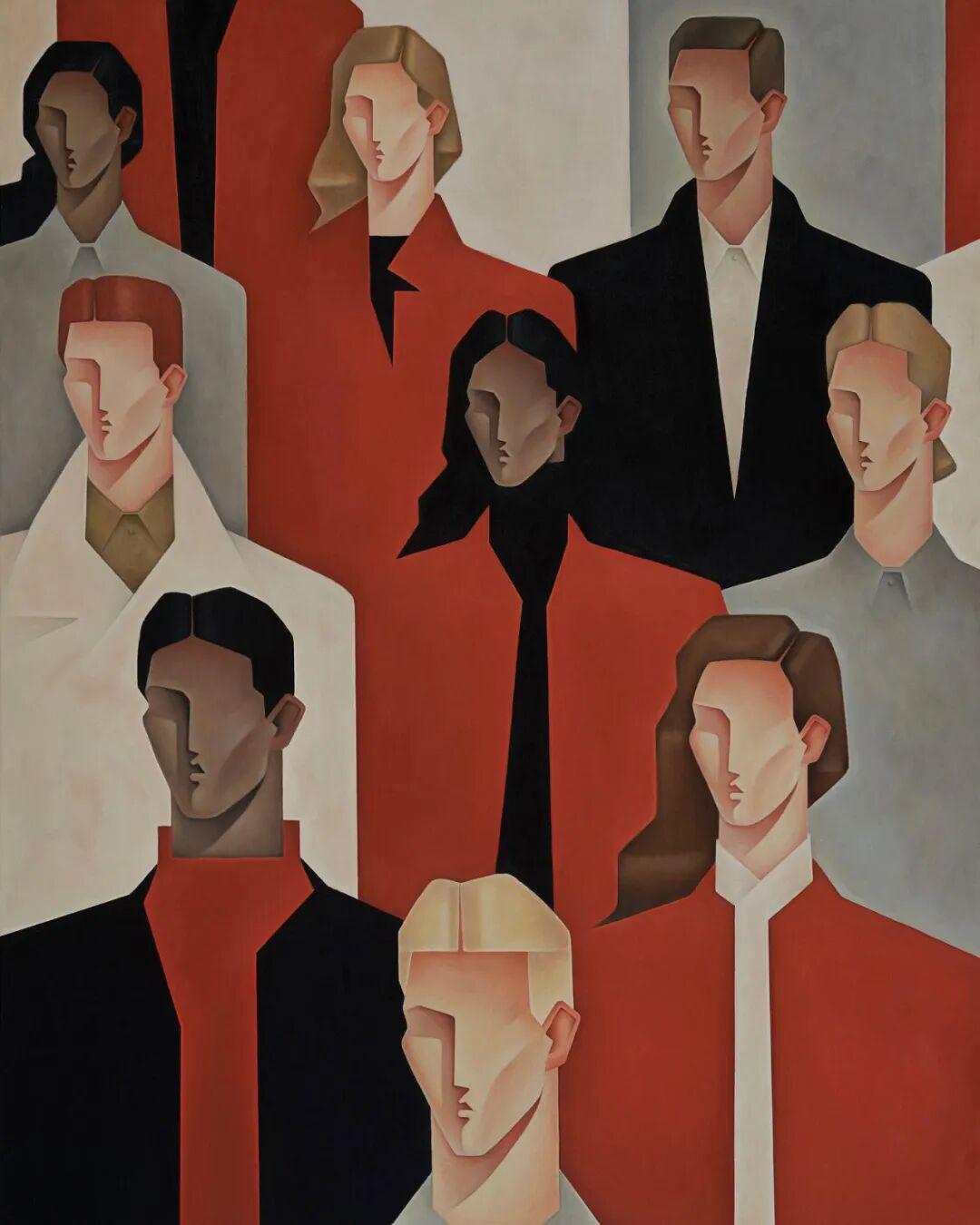 Valeriya画中的人物,没有精致细腻的五官描绘,更没有能透露出人物情绪的面部细节。但她却能精准传达出人物与人物之间的关系与氛围。