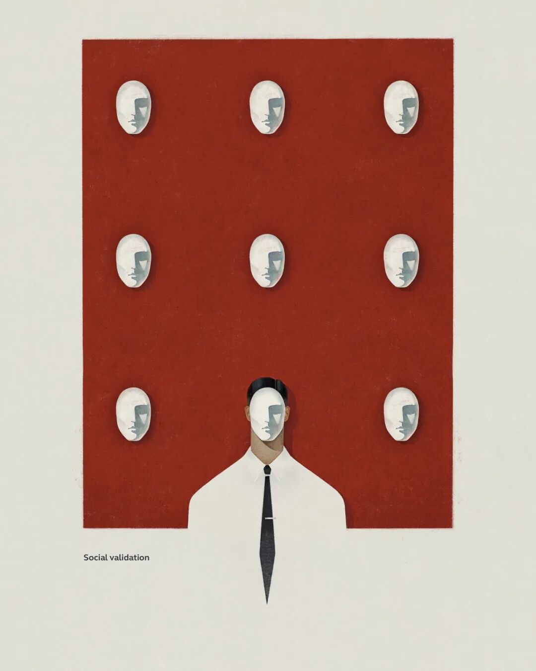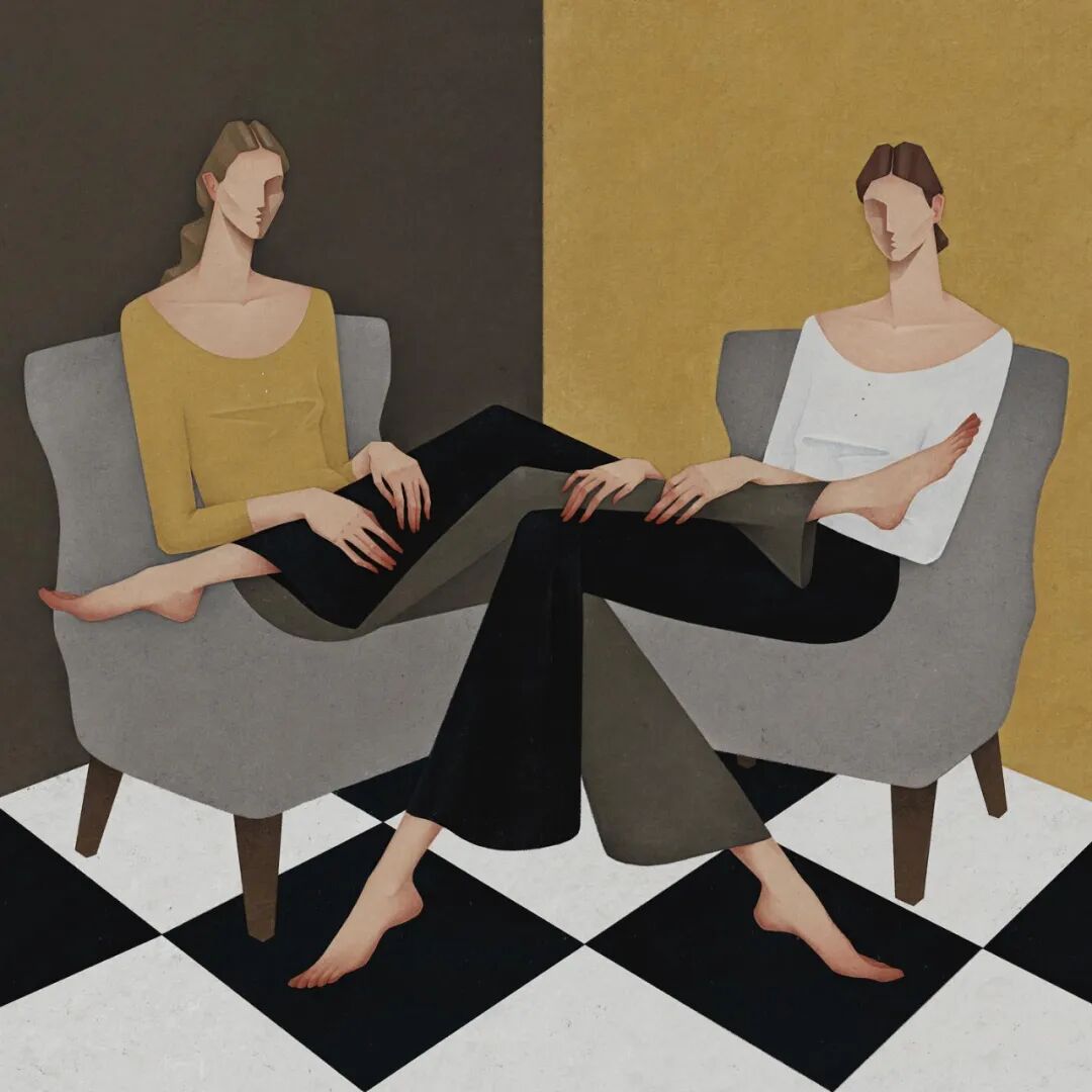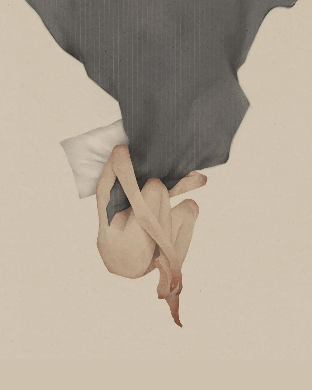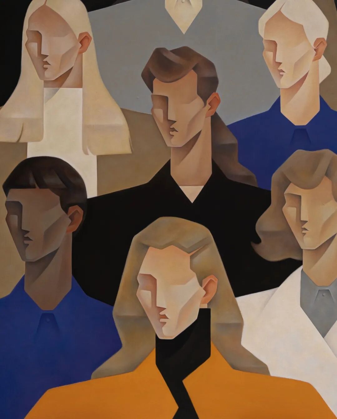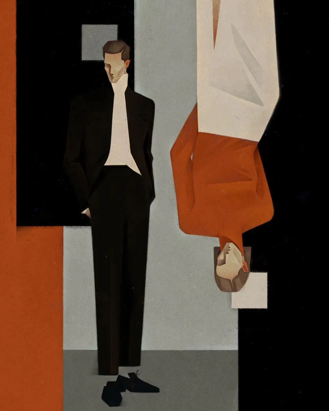Valeriya画中的人物,没有精致细腻的五官描绘,更没有能透露出人物情绪的面部细节。但她却能精准传达出人物与人物之间的关系与氛围。