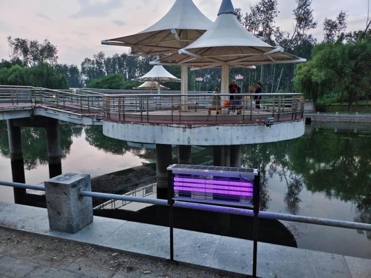 “之前傍晚来散步赚配网,蚊子直往身上扑,胳膊、腿上被叮得全是包!”夏季到来,常在顺义区减河公园散步的居民曾一度被蚊虫袭扰。最近居民们却发现,从减河公园到伞桥段的河岸边,多了一排散发着紫色柔光的“小卫士”——15盏太阳能驱蚊灯正在工作,灯光下不时闪起蚊虫被电击的微光,伴随着轻微的“啪、啪”声,蚊虫密度肉眼可见地降低了。